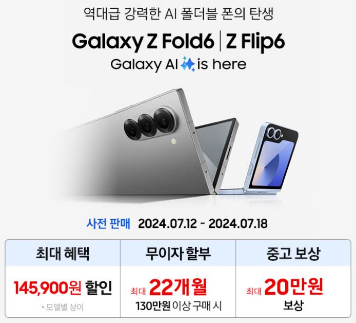 갤럭시 Z 폴드6 플립6 정보 가격 디자인 색상 사전예약 (0) | 2024.07.12 |