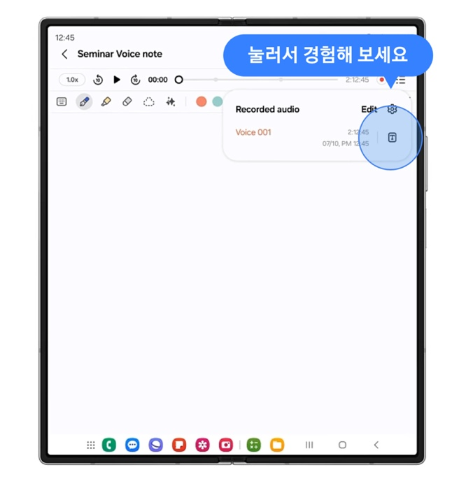 - 멀티태스킹을 하면서도 간단한 터치로 편리하게 노트를 정리할 수 있습니다. 노트 어시스트라는 기능이 녹음을 텍스트로 변환시켜주고 내용도 요약해주는 기능을 할 수 있습니다.