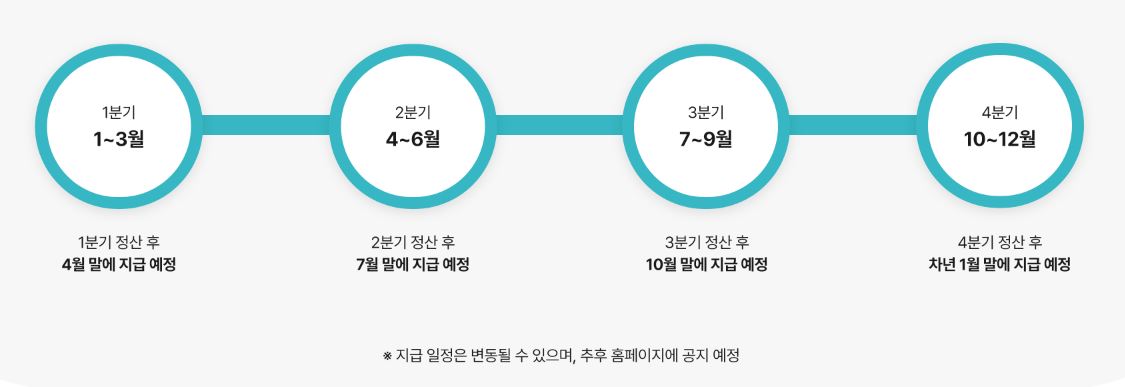 - 신청된 분기부터 지원됩니다.(예. 7월에 가입을 하면 3분기부터 지원이 됩니다.)