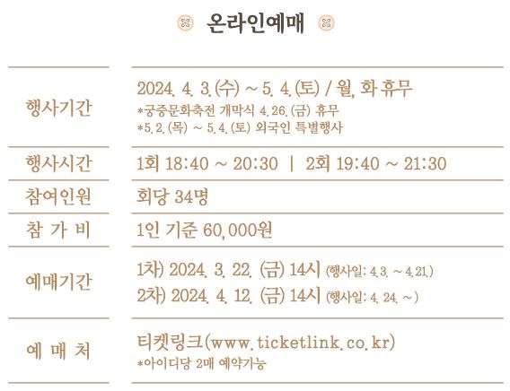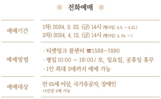 - 예매시간: 3.22.(1차) | 4.12.(2차) | 14:00 ~ (선착순 마감)