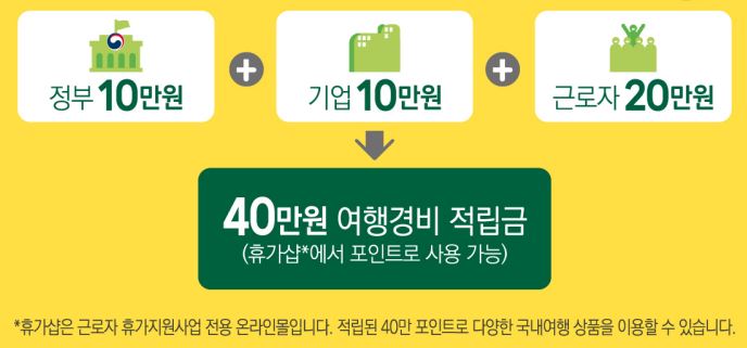 - 기업과 근로자가 여행적립금을 만들면 정부에서 10만 원을 지원하게 됩니다.