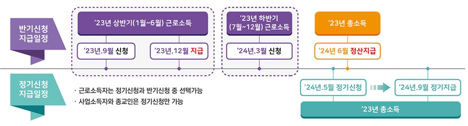 2. 근로장려금 반기신청 및 지급 일정 안내