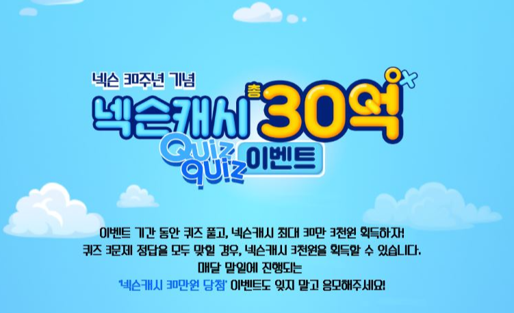 - 이벤트 기간 동안 퀴즈를 풀고 넥슨캐시 최대 30만 3천원을 획득하세요!
