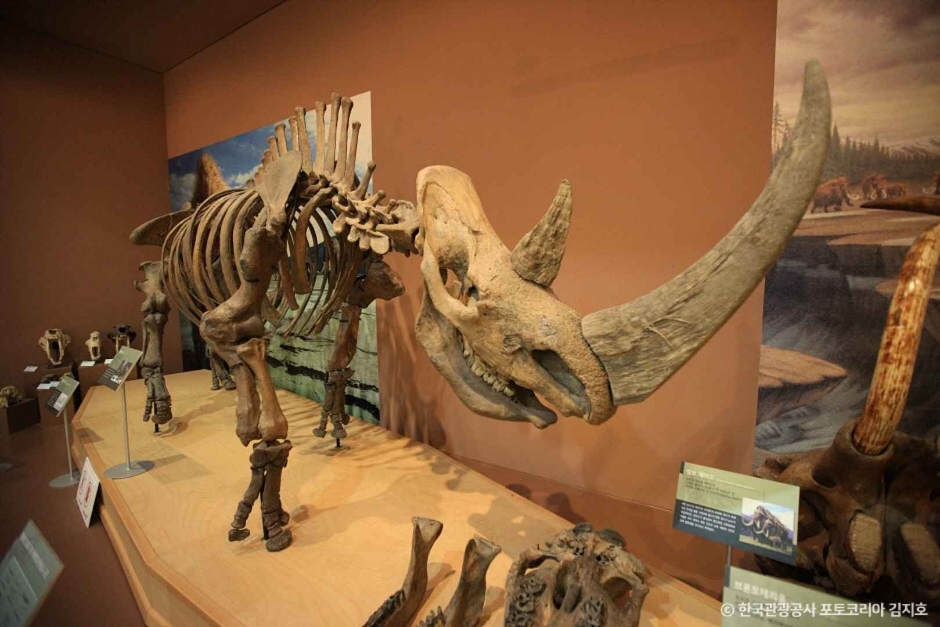 - 세계 2점만이 발굴 복원된 공룡 화석 프레노케랍토스와 콘코랩터, 희귀한 해양파충류 등 오랜 지구 역사를 추측해 볼 수 있는 다양한 원본 화석들을 비롯한 표본 2만여 점이 전시되어 있습니다.