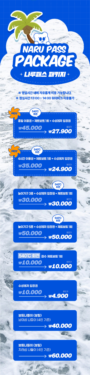 | H 패키지(놀이기구 종일 무제한) | 55,000 |