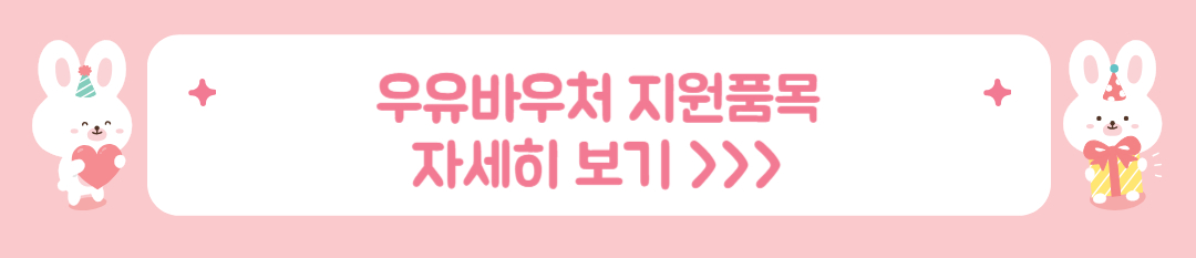 - 국산 흰 우유 및 국산 원유 50% 이상이 함유되어 있는 딸기 우유 등의 가공유와 요거트, 치즈류 등을 구매할 수 있습니다.