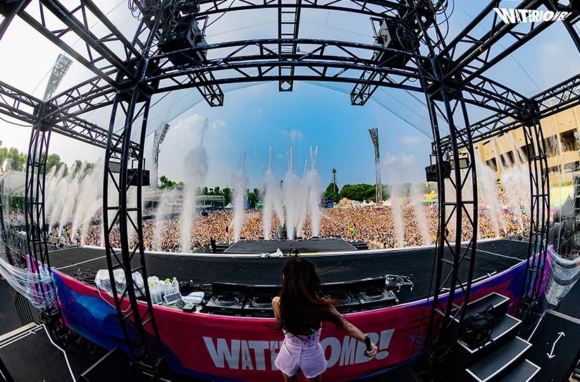 - '워터밤(Water Bomb)'이란 K팝과 물놀이를 함께 즐기는 매년 여름에 열리는 음악 축제이며, 특설무대에 물을 채우고 레드와 블루 두 팀으로 나누어 관객들과 아티스트들이 상대방과 물싸움을 즐기는 축제입니다.