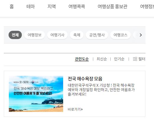 - '대한민국 구석구석'을 통해 동해 해수욕장 검색 시 상단의 일부분이며, 일정 확인 중인 곳과 일정이 확정된 곳이 있으니, 방문하실 곳을 확인해 주시기 바랍니다.