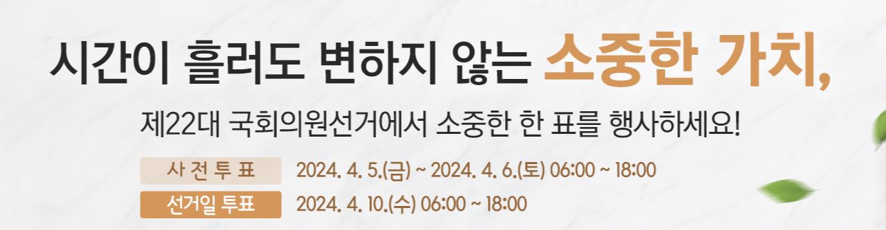 2. 투표 시간: 24.04.10.(수) 오전 06시 ~ 오후 06시까지