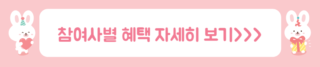 | * 상황에 따라 제공되는 혜택이 조기 종료 될 수 있음을 알려드립니다. 참여사별 자세한 혜택은 "참여사별 혜택 자세히보기"를 참고해주시기 바랍니다. |